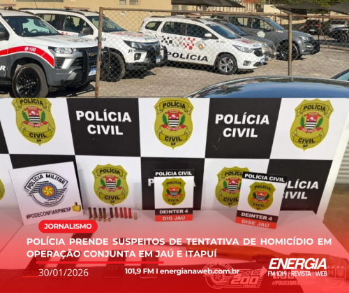 Uma operação conjunta entre a Polícia Militar e a Polícia Civil prendeu suspeitos de envolvimento em uma tentativa de homicídio e reforçou a segurança nos municípios de Jaú, no Distrito de Potunduva, e Itapuí. A ação, denominada Operação Nêmesis, cumpriu sete mandados de busca e apreensão e dois mandados de prisão temporária relacionados ao crime ocorrido em 11 de janeiro, em Potunduva.