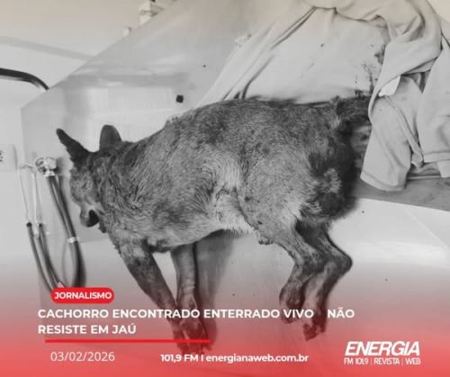 Infelizmente, o cachorro encontrado enterrado vivo próximo a um condomínio em Jaú, nesta terça-feira (03), não resistiu e morreu.
