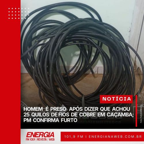 Inicialmente, o homem afirmou ter achado o material em uma caçamba de lixo. No entanto, após ser questionado novamente, ele confessou o furto. Os policiais foram até o local indicado e constataram cortes e danos na fiação de um poste, confirmando o crime.