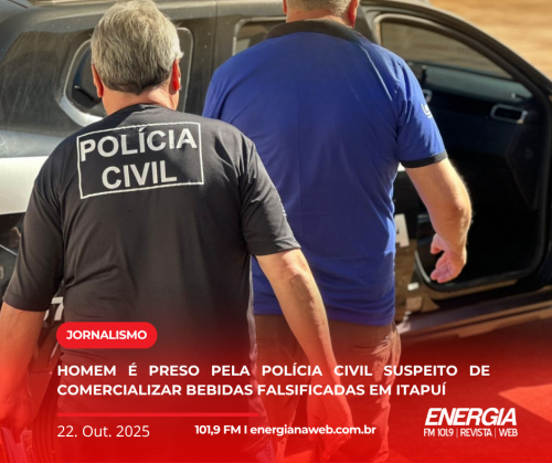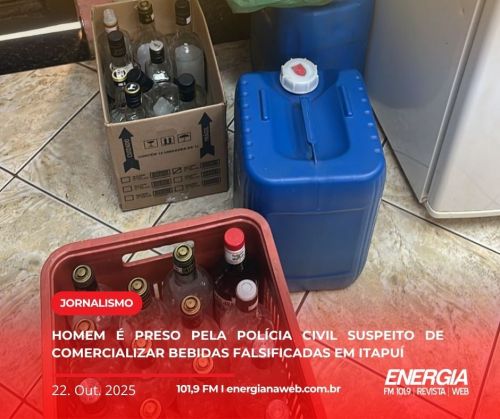 A Polícia Civil de Itapuí prendeu em flagrante um homem de 49 anos suspeito de comercializar bebidas alcoólicas falsificadas em um estabelecimento localizado no Balneário Mar Azul.
