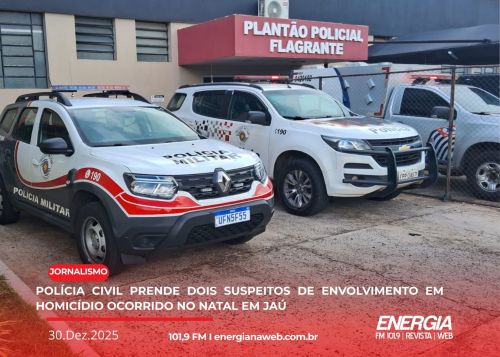 A Polícia Civil de Jaú prendeu dois homens suspeitos de envolvimento no homicídio ocorrido na madrugada do dia 25 de dezembro, dia de Natal, no Residencial Cidade Alta. As prisões são temporárias, com prazo inicial de 30 dias, e foram cumpridas pela Delegacia de Investigações Gerais (DIG), após autorização do Poder Judiciário.