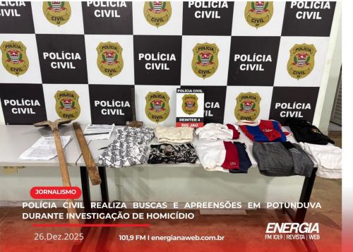A Polícia Civil de Jaú realizou, nesta sexta-feira (26), diligências no Distrito de Potunduva, relacionadas à investigação de um homicídio ocorrido na madrugada de Natal, no Residencial Cidade Alta, em Jaú.