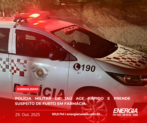 A Polícia Militar prendeu em flagrante, nesta terça-feira (28), um homem suspeito de furtar uma farmácia localizada na Avenida Isaltino do Amaral Carvalho, em Jaú. A ação rápida e coordenada da corporação foi fundamental para a detenção do indivíduo, que confessou o crime durante a abordagem.