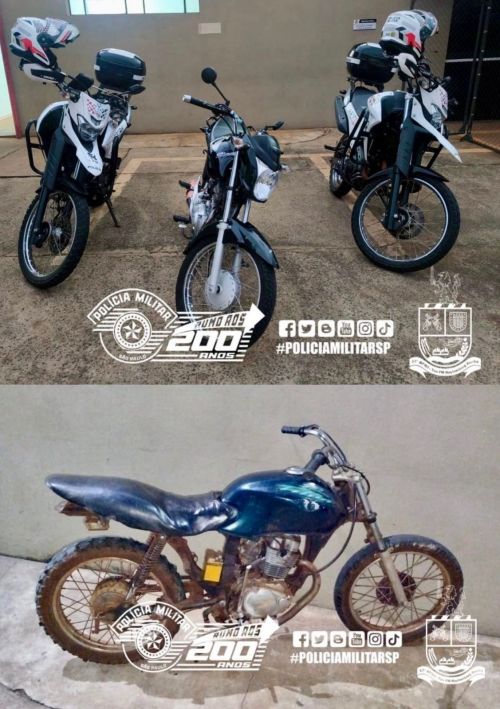 - Motocicleta irregular apreendida: No Distrito de Potunduva, policiais identificaram um motociclista sem capacete conduzindo um veículo sem sinais identificadores. Após tentativa de fuga para uma área de mata, a motocicleta foi apreendida com chassi suprimido e motor adulterado.